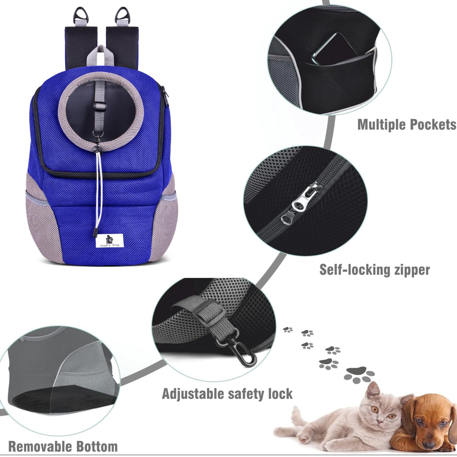 • Maximum Comfort & Support: The Dad’s Dog Pet Carrier Bag features a thick sponge padding and breathable mesh cloth, ergonomically designed to reduce shoulder and back strain for the owner.